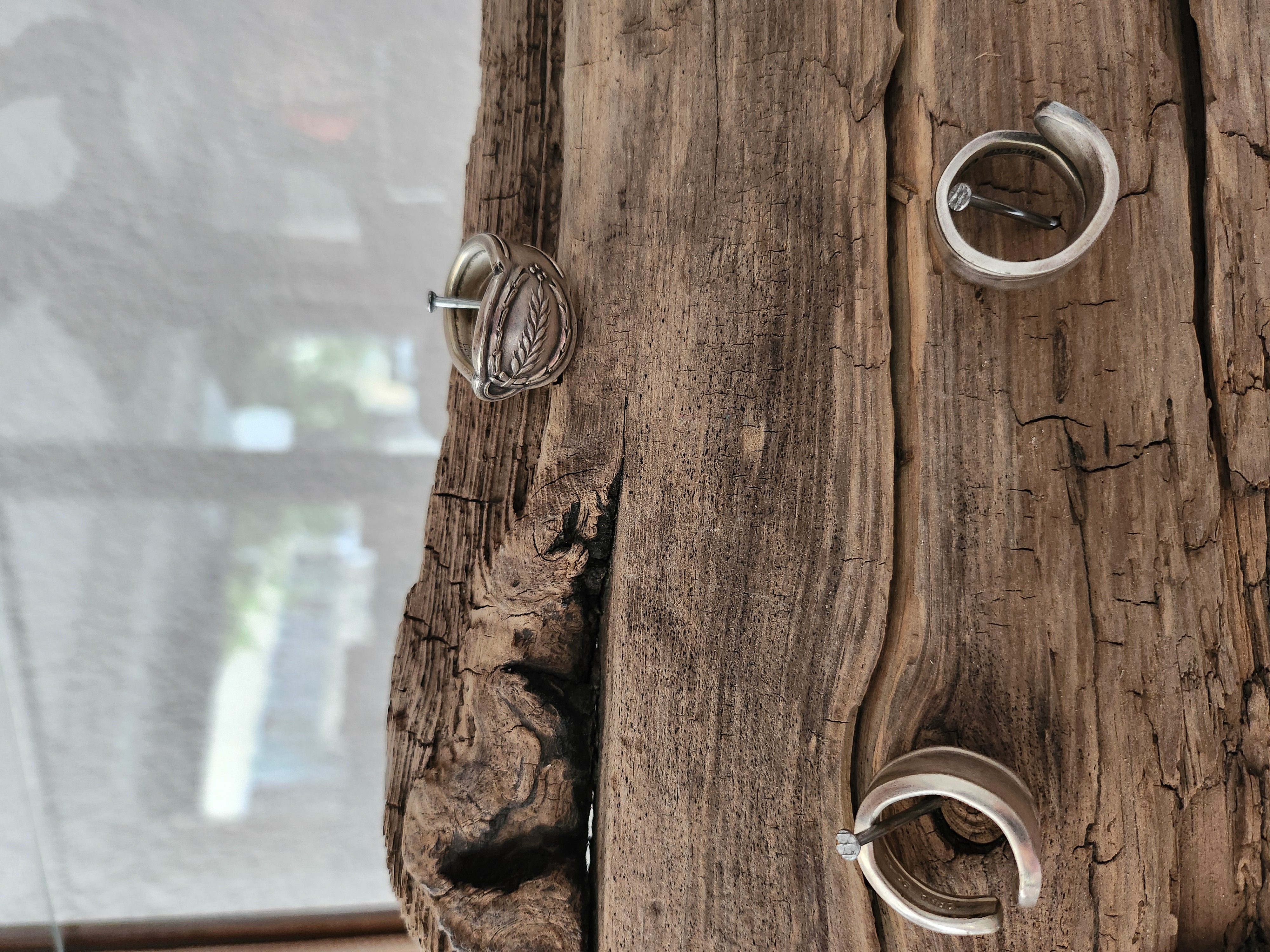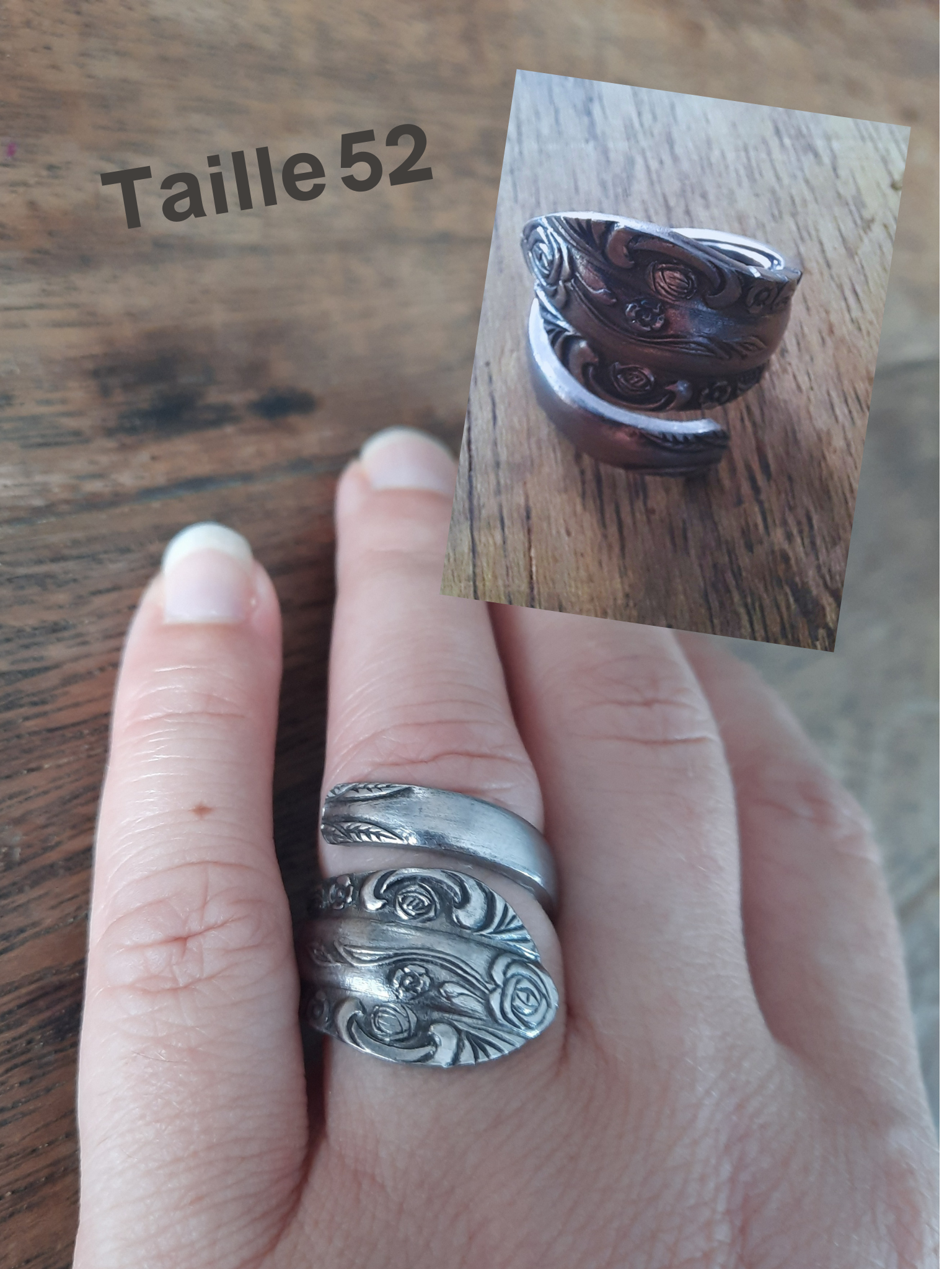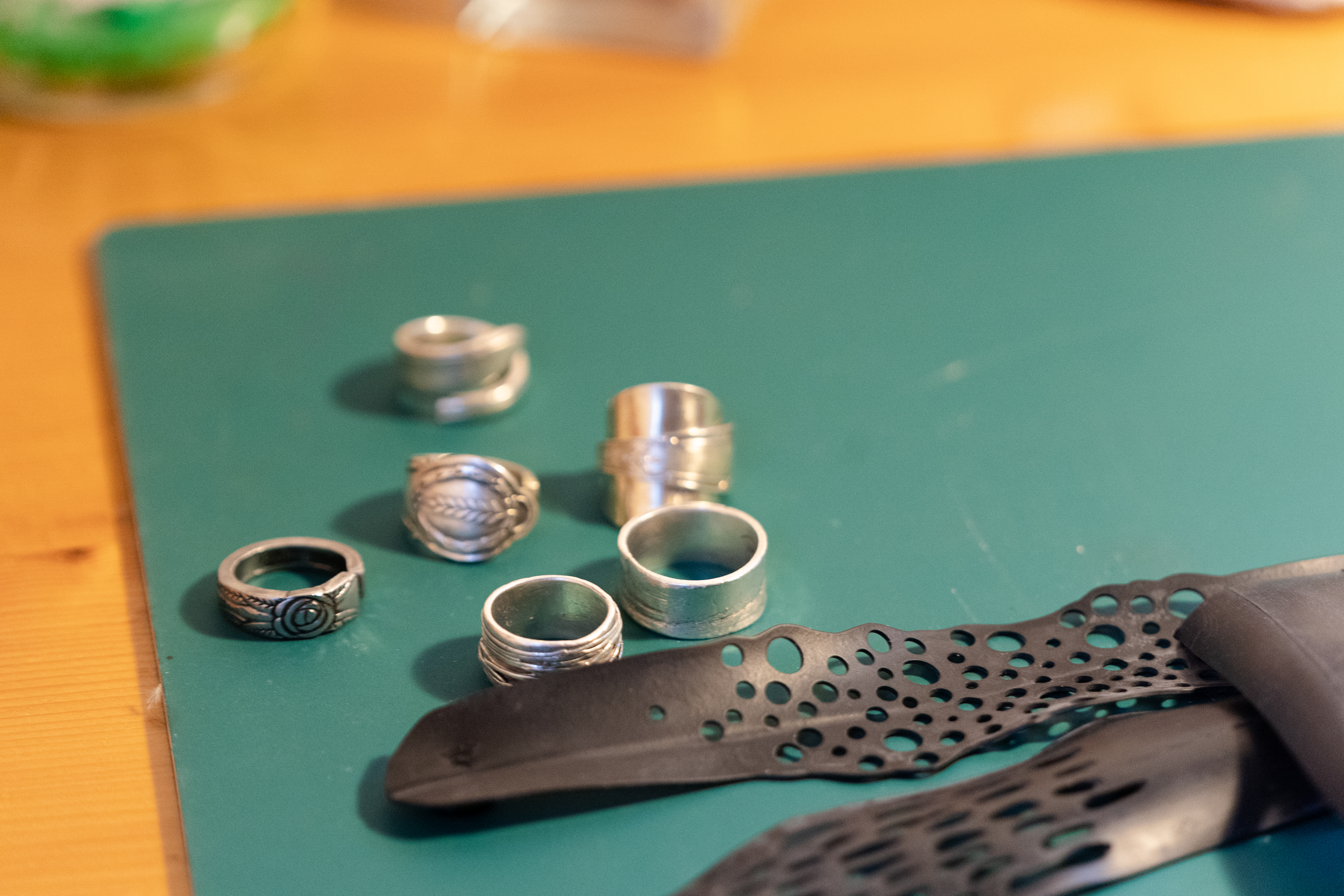 Nous avons désiré dès le début de faire vivre ou revivre l'argenterie de nos parents, grand parents. Vous avez alors la possibilité de nous amener votre "vaisselle" en argent afin d'y réaliser des bagues. En ce moment il est aussi possible d'essayer nos divers réalisations en argent ou en inox (matière métallique qui ne change pas d'aspect). La torsion, la découpe, le ponçage, le lustrage, ainsi que l'inspiration créative font partie de chaques bijoux et bagues.