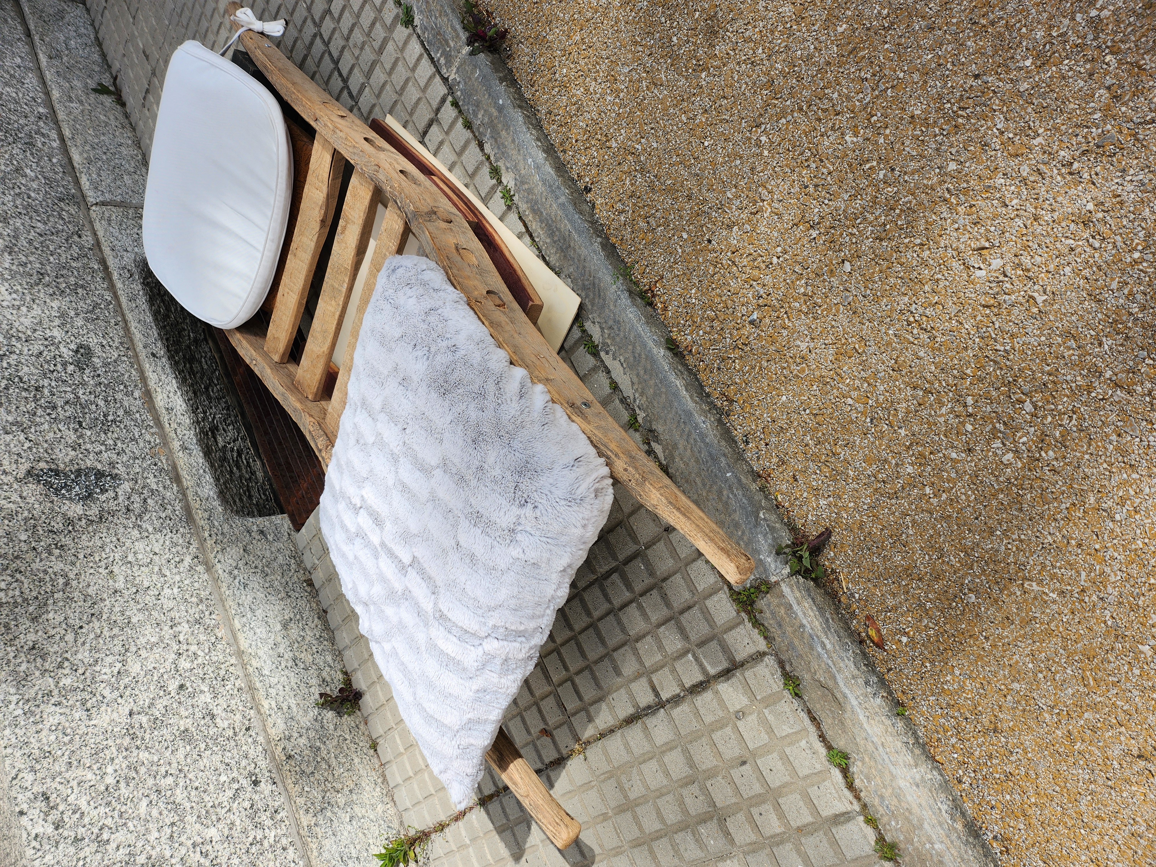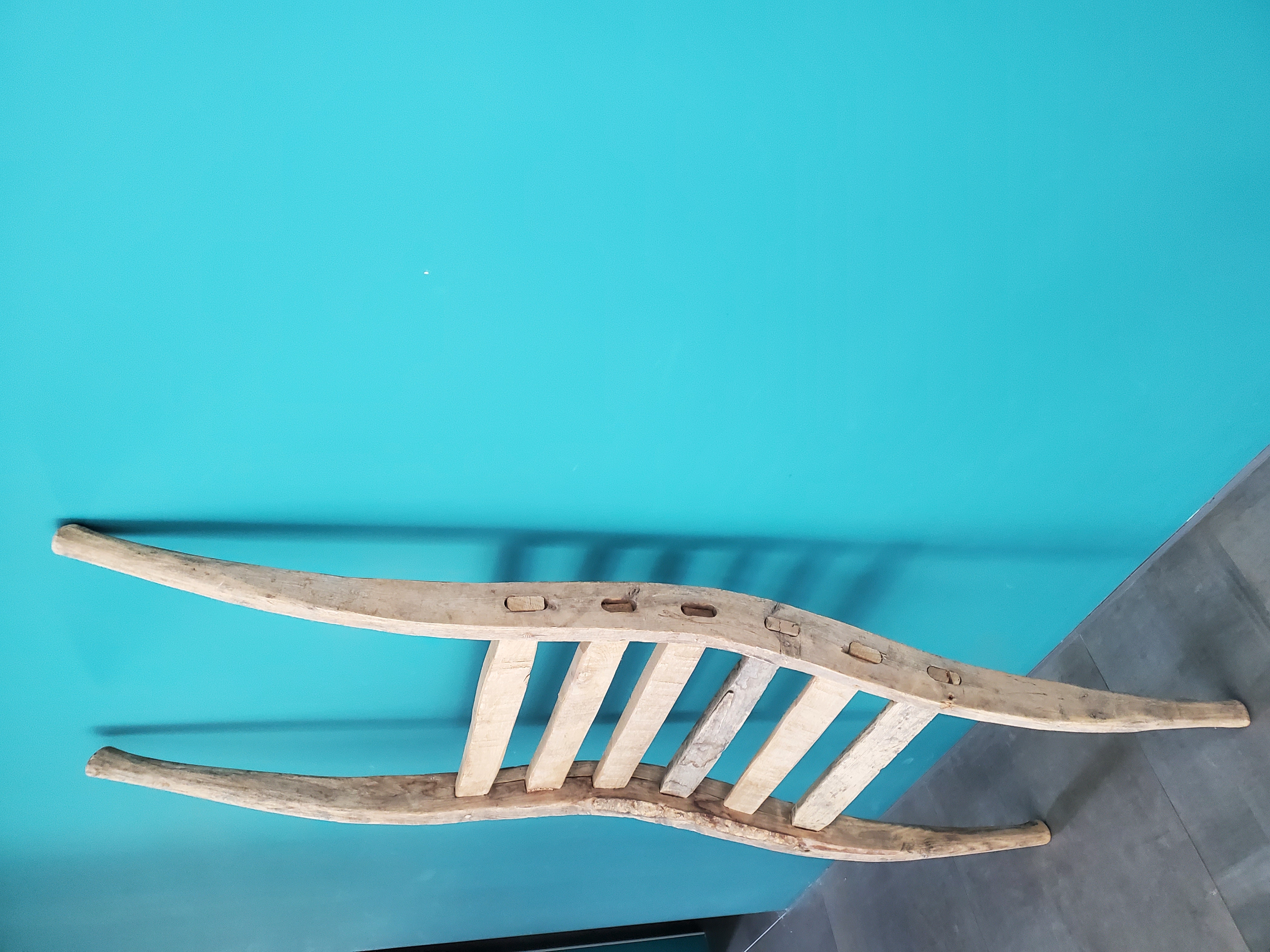 Il a longtemps été un engin pour porter les pierres ou charges à deux voir quatre afin de bâtir des murs dans les vallées et faire suer l'homme. Aujourd'hui il est venu le temps de se balancer et de se reposer. Ce porte pierre *Bayart accueil alors des lattes de tonneau et une assise de chaise pour la tête dans l'idée de pouvoir s'y allonger et de créer un effet de balancier super reposant surtout lorsqu'on s'imagine le travail qu'il a pu offrir aux hommes et femmes. Un coussin amovible vintage recouvert d'une housse toute douce s'épouse exactement à la bonne largeur et au confort. Une housse rembourée a également été selectionnée pour y reposer sa tête et sa nuque. Pourrions nous s'imaginer se reposer sur un des outils de nos ancêtres? Oui avec Bosse et balance.